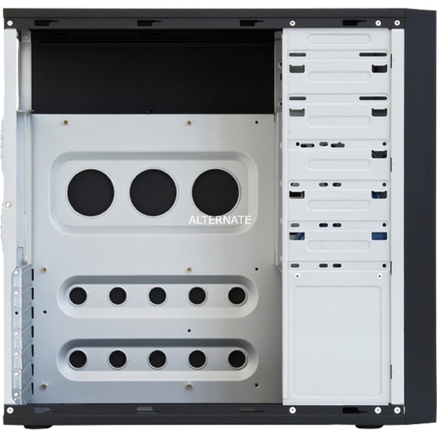 | Anmerkungen | ergonomisch plazierte Frontanschlüsse, Miditower Gehäuse in schwarzem Design, Mesh Front, herausnehmbarer Festplattenkäfig, zwei 120-mm-Lüfter im linken Seitenteil einbaubar | ||