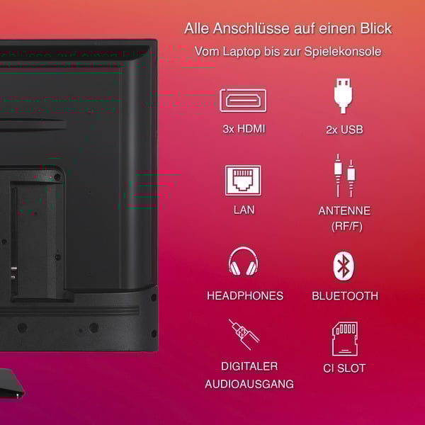 | Anschlüsse | 1x Antenne-In, 1x LNB-In, 3x HDMI-Eingang, 1x Kopfhörer-Ausgang, 2x USB-A, 1x RJ 45, 1x CI+, 1x Optisch-Out | ||