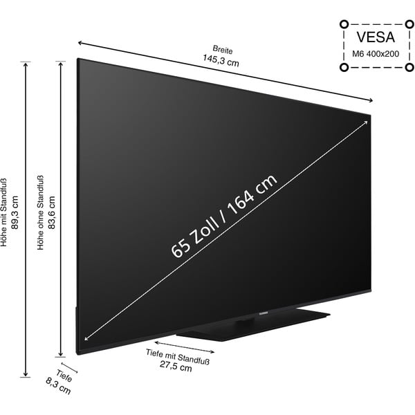 | Bildschirmdiagonale | 164 cm (65 Zoll) | ||