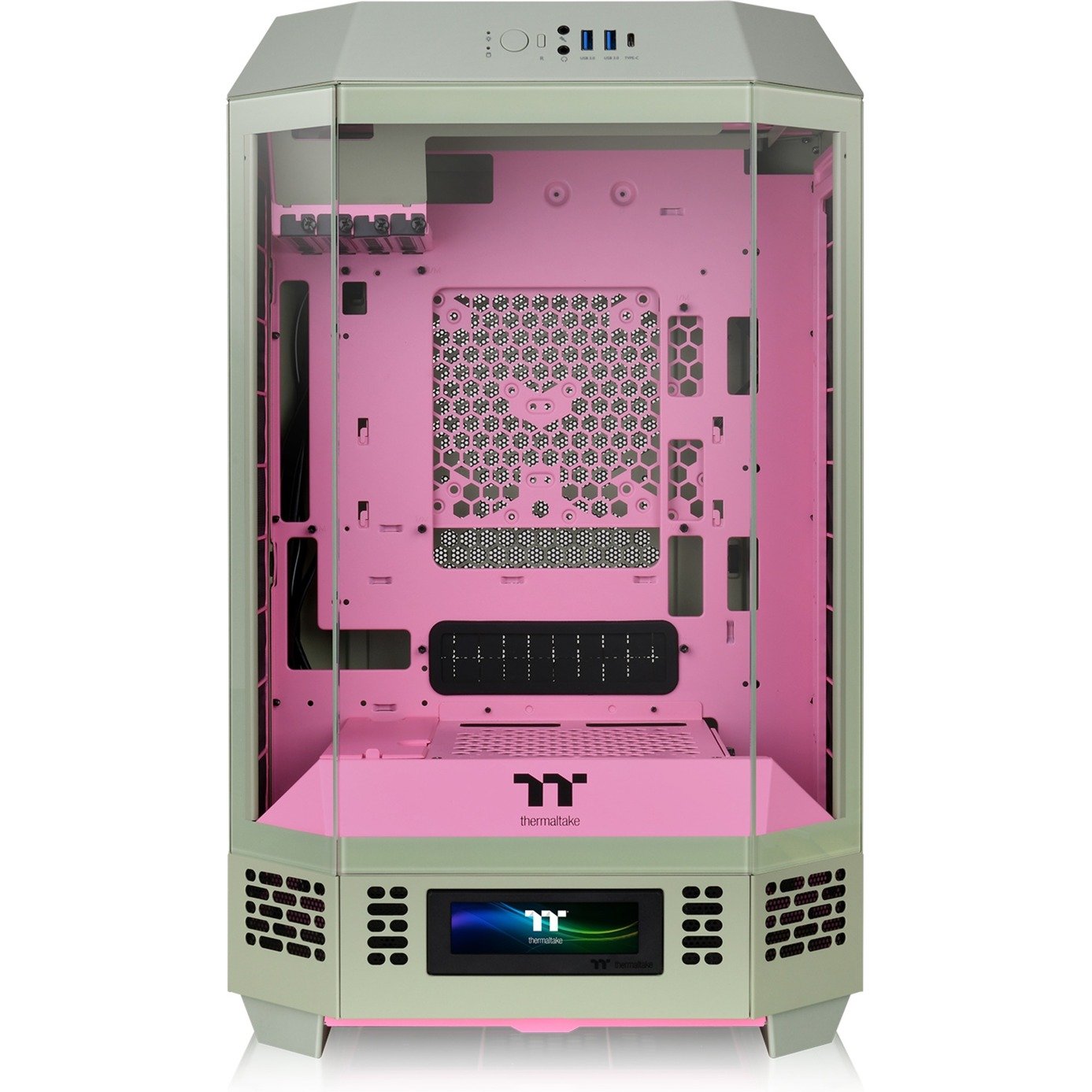 | Feature | Das 3,9-Zoll-LCD-Display ermöglicht es Ihnen, Informationen in Echtzeit zu überwachen und beliebige Bilder oder GIFs hochzuladen, um mit der TT RGB Plus 2.0-Software zusätzliches Flair zu verleihen. Außerdem können Sie mit den Kühlkomponenten interagieren, die über dieselben LCD-Displays verfügen. Die neueste Version enthält einen Wetter- und einen Zeitmodus, mit dem Benutzer die Nutzung unserer LCD-Displays erweitern können. | ||