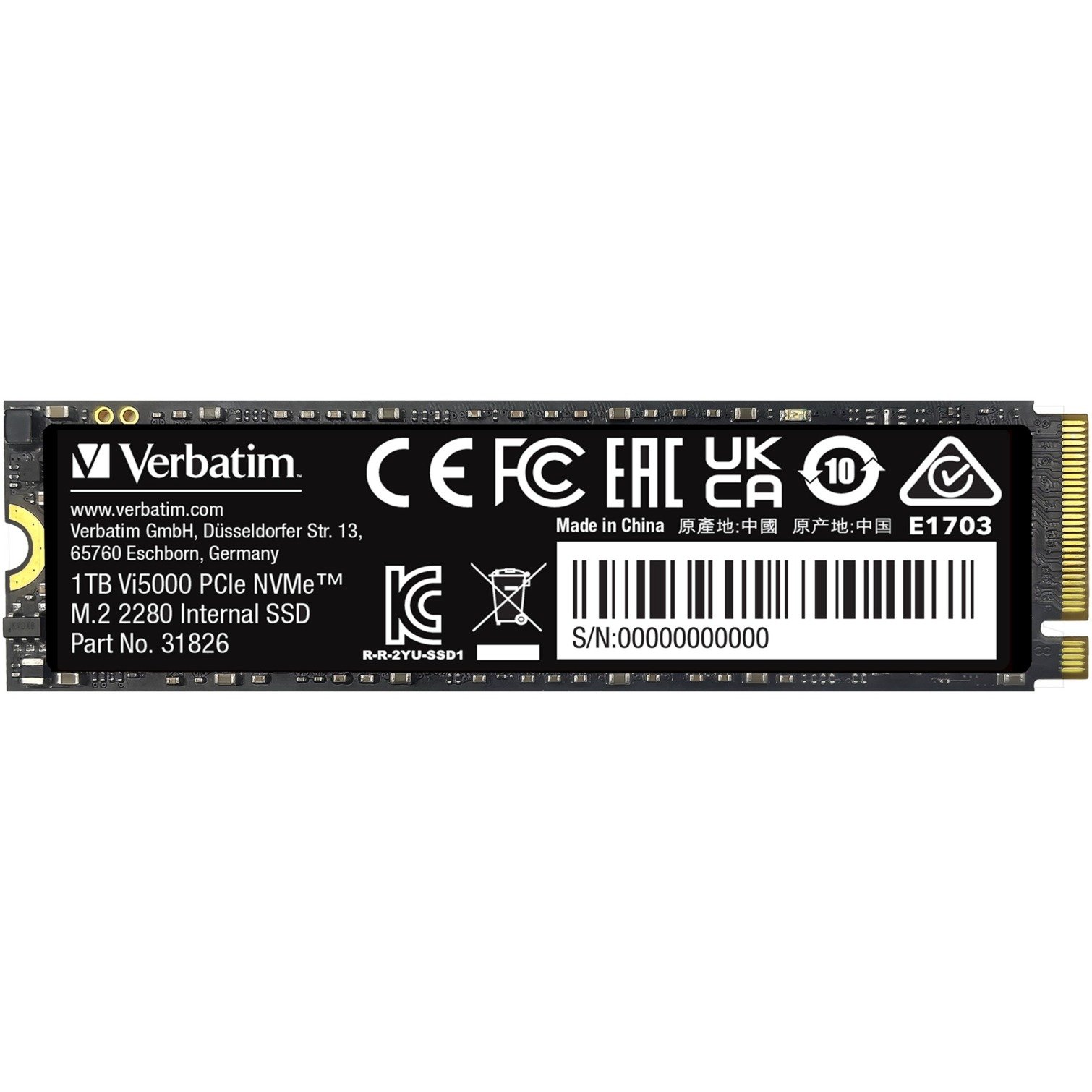 Verbatim Vi5000 1 TB, SSD , SSD, Steckkarte, 1 TB, 1x M.2 (M.2-Modul Key: M), PCIe 4.0, 5.000 MB/s, Lesen, 4.500 MB/s
